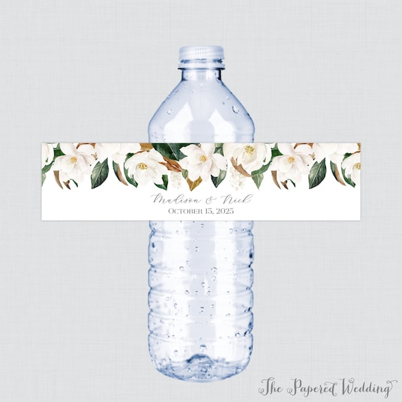 Source : www.timberrockvillage.comPrintable OR Printed Magnolia Wedding Water Bottle Labels White