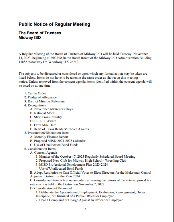 Source : www.nola.comMidway ISD ADM Board Meeting